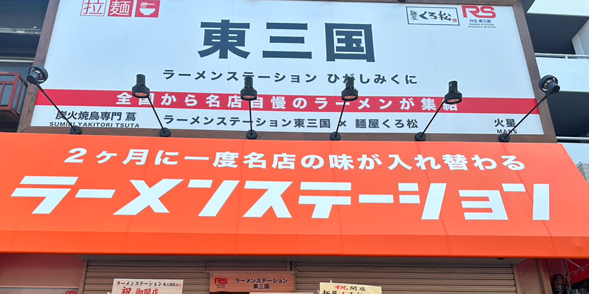 大阪の都心部・新大阪にほど近いエリアに店舗を構えるラーメンステーション東三国は「2ヶ月に1度、名店の味が入れ替わる」という共通のコンセプトのもと、全国の名店のラーメンを隔月替わりのラーメンが味わえるだけでなく、食べログ百名店にも選出されている大阪の「らーめん香澄」や愛知の名店「麺屋くろ松」のオリジナルメニューをいつでも楽しむことができます。